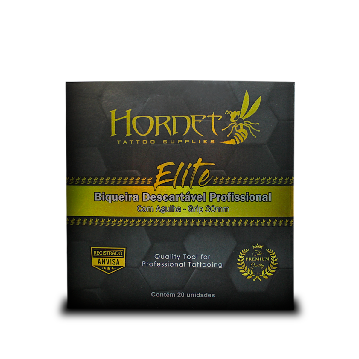 Os bicos da Hornet Tattoo Supplies modelo Elite tem uma pegada sensacional, com grip de 30 mm essa biqueira já vai montada com agulha e pronto para uso.
