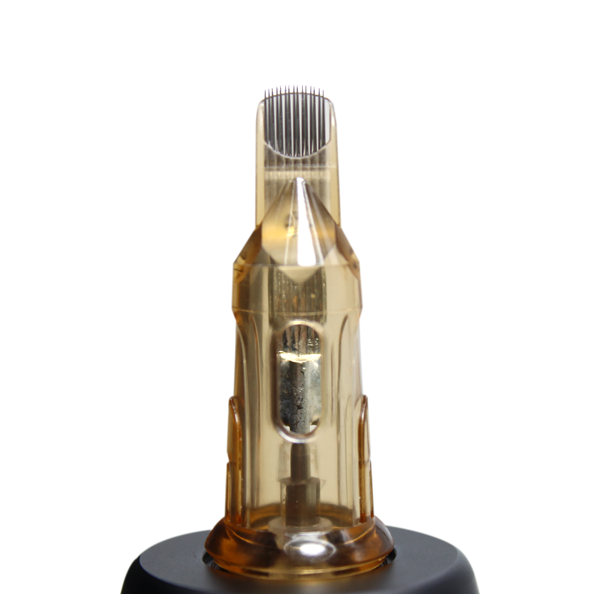 Encaixar o cartucho no equipamento de tatuagem, girando até trava-lo. Regule o recuo da agulha na posição desejada.